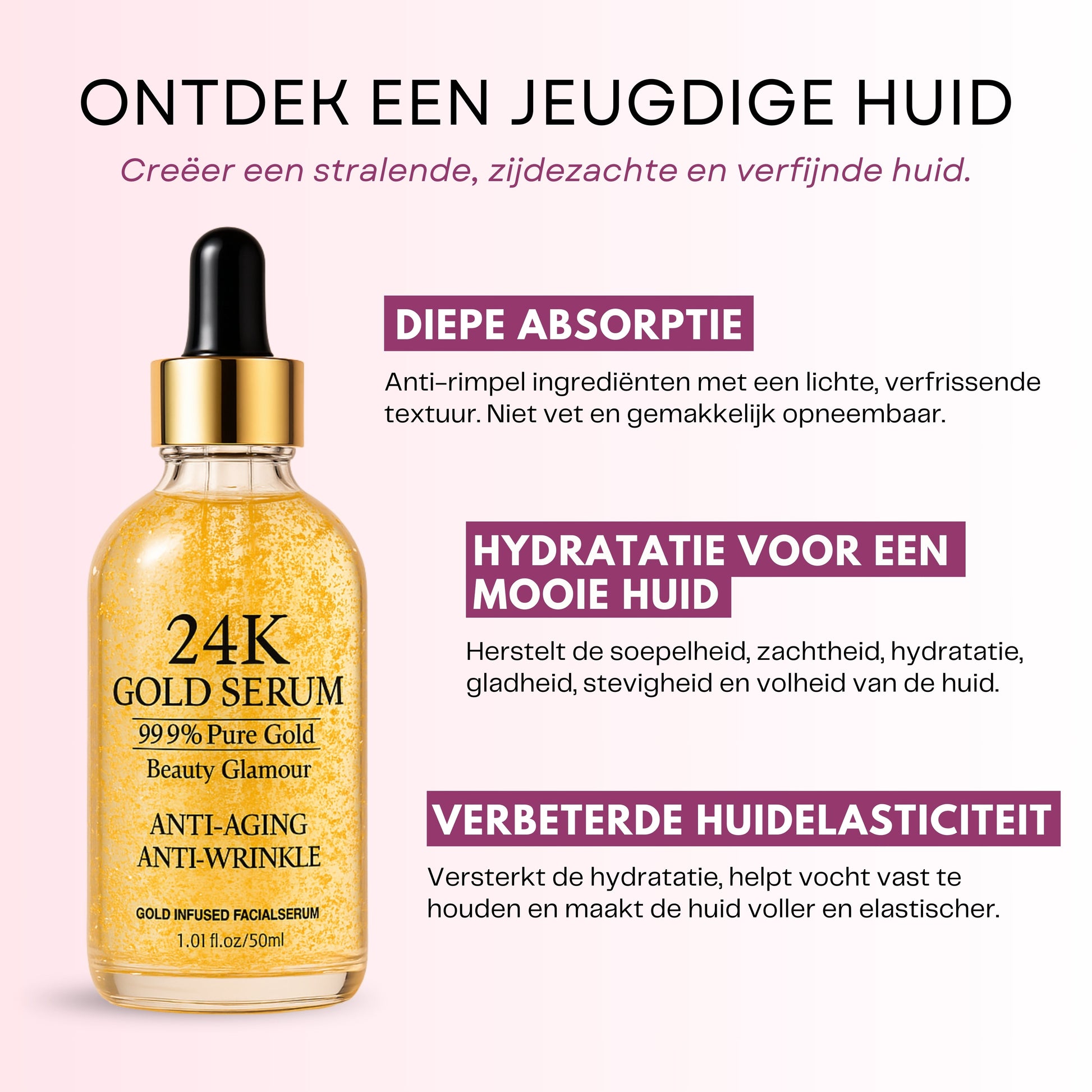 24K goud werkt als antioxidant en ondersteunt celvernieuwing.