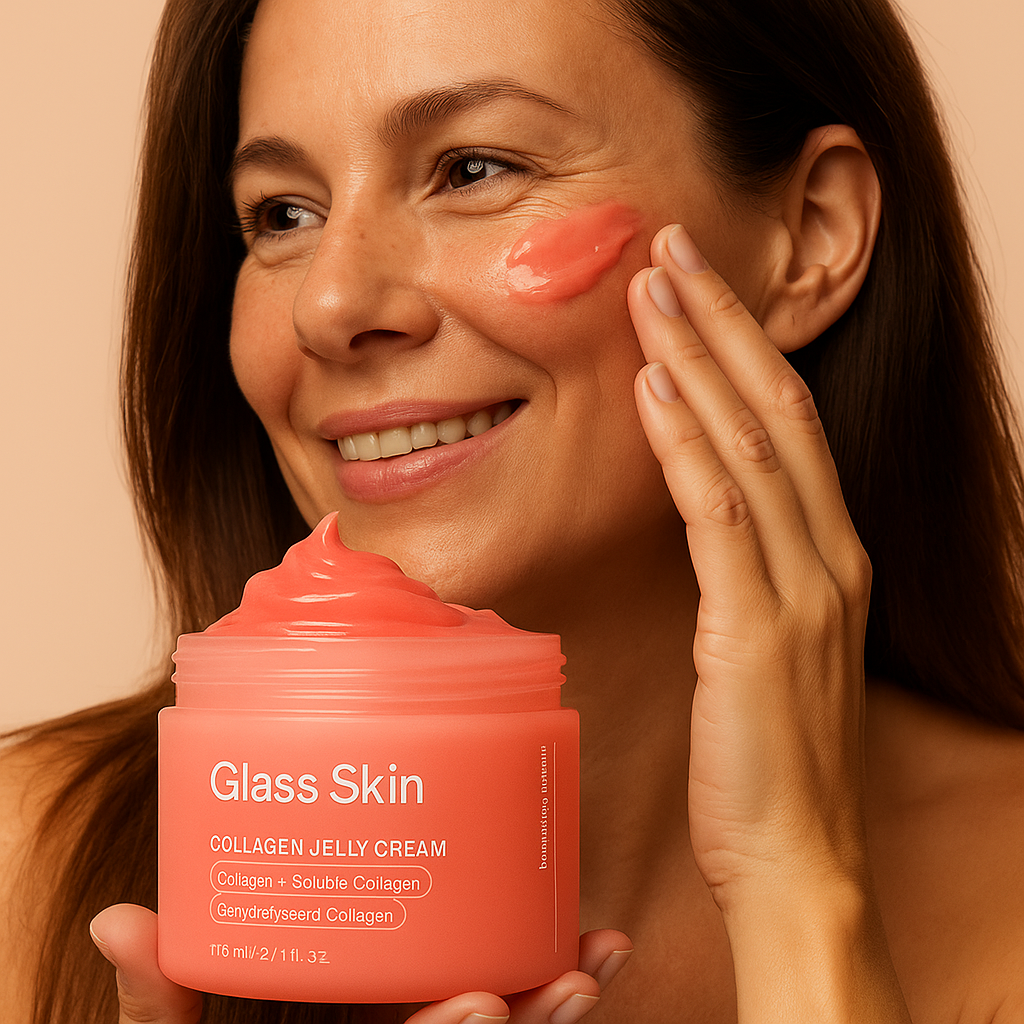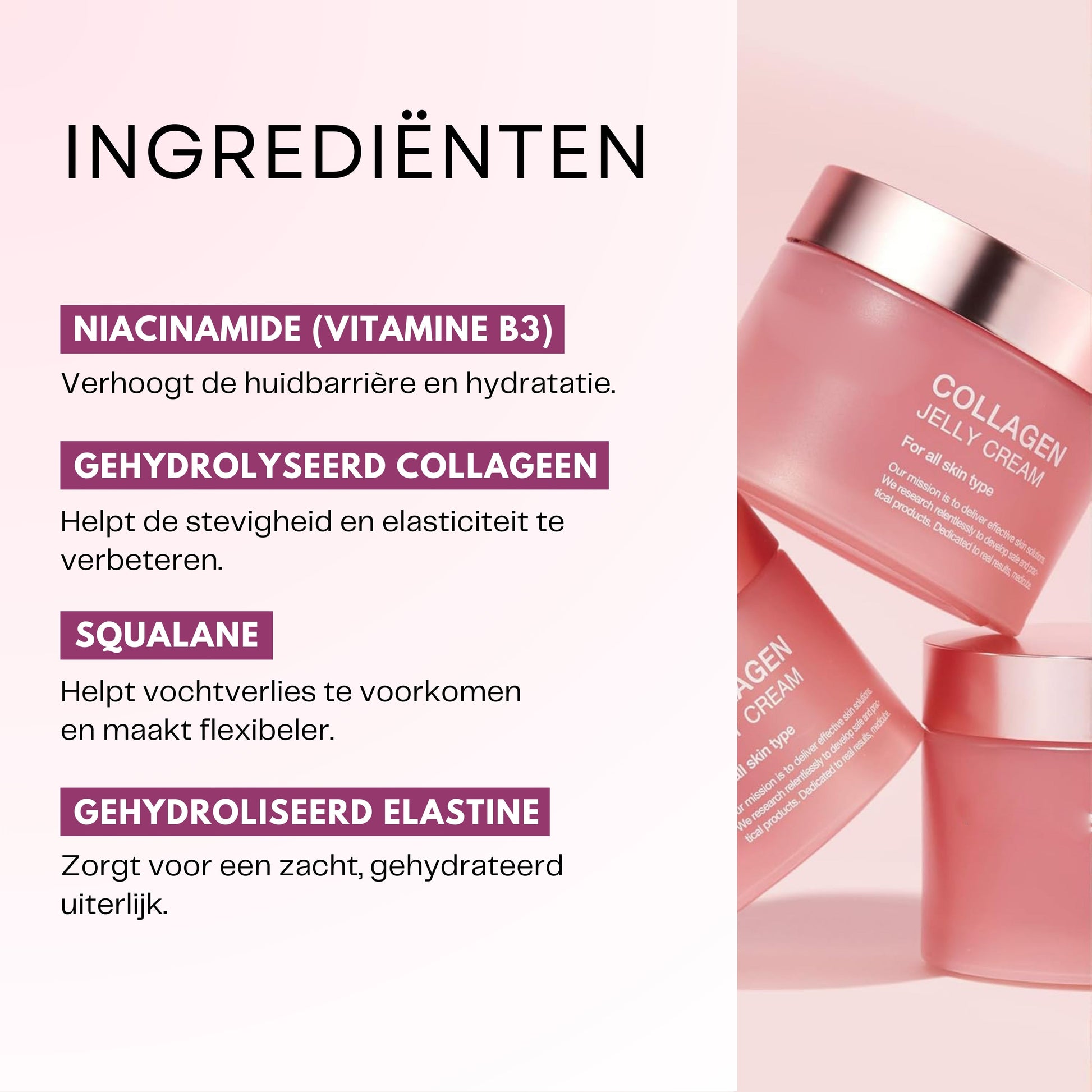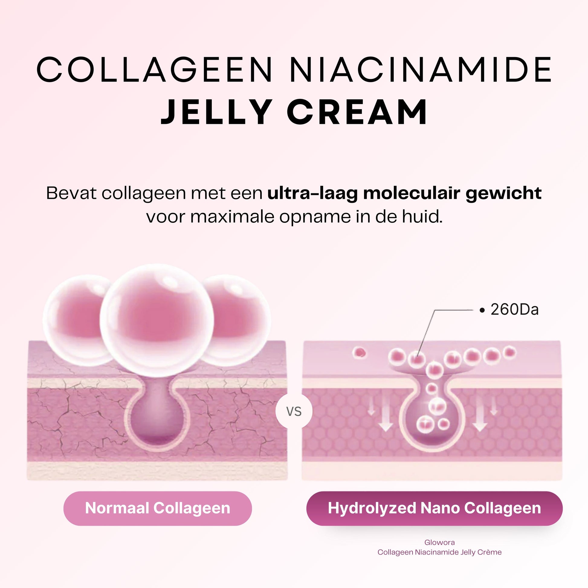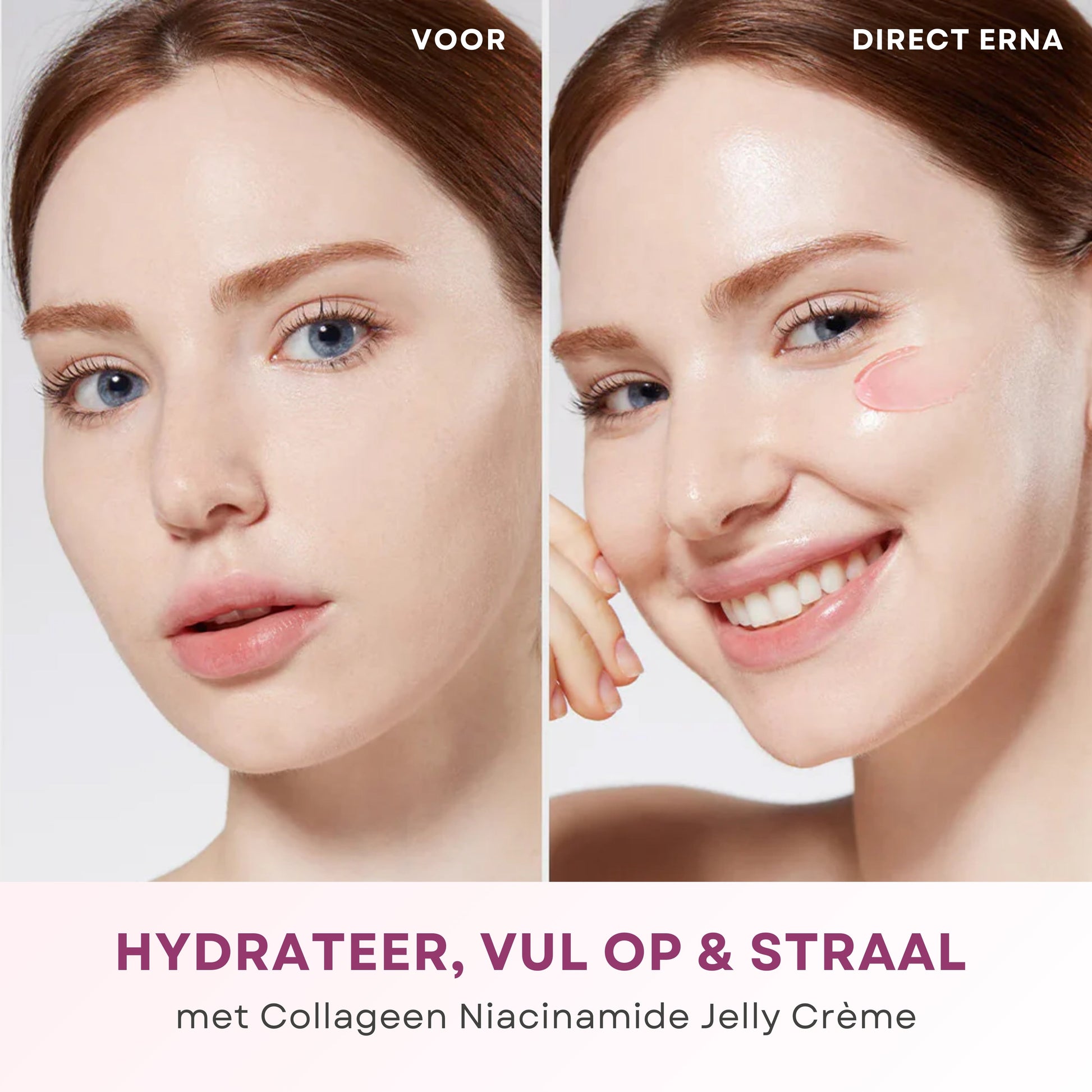 Onze Collageen & Niacinamide Jelly Crème helpt dit te herstellen met een krachtige, verfrissende formule: